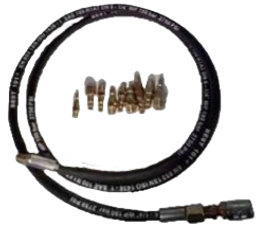 Contiene: 2 mts de manguera, un cople rápido y 8 juegos de conexiones con diferente rosca para llenado (3/8, 1/2-20, 1/4, 9/16, 5/8, 3/4, hembra de 1/4 y 1/8).